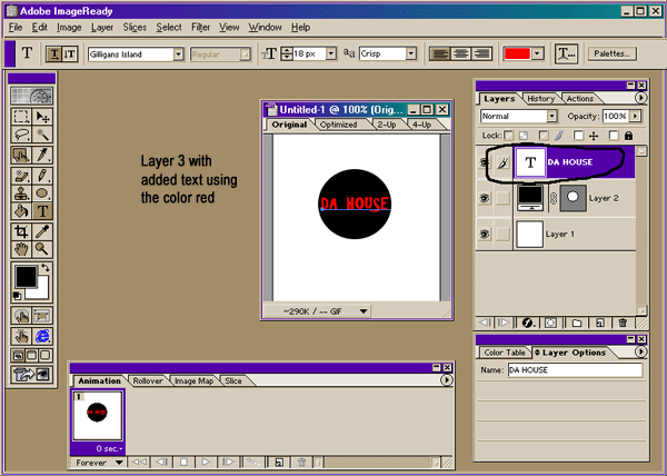 ImageReady workspace, but this time with an image file already open.
